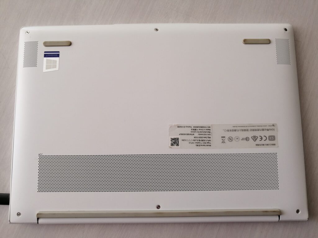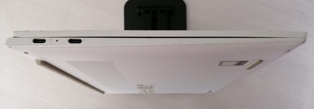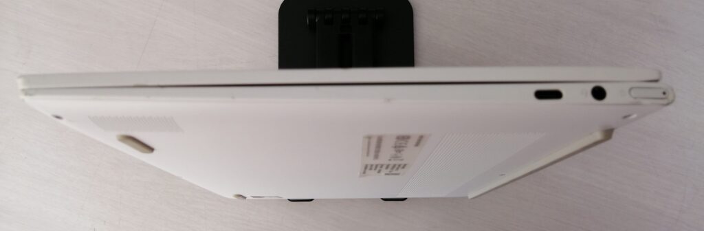このパソコンはおしゃれな白と1Kgの軽量パソコン、ただしUSB-Cポート3口のみ