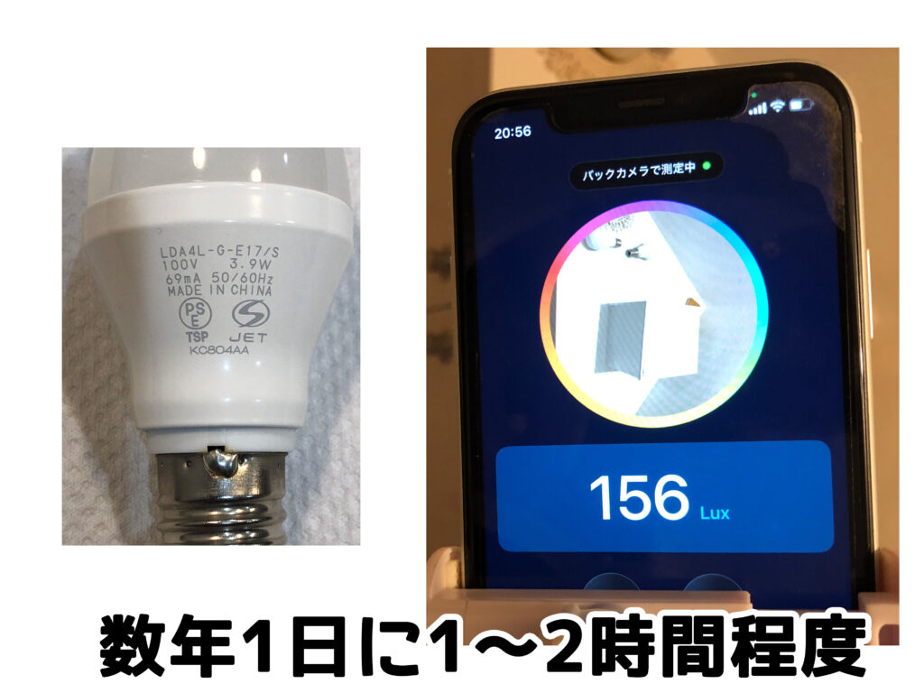 ↑使用中の電球が暗く感じてきたので交換しようと思いテストしてみた。これは40Wなのでとりあえず60Wに交換しようと思う。